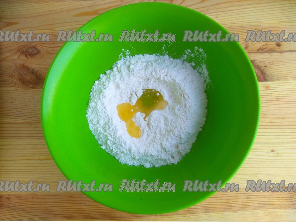 Вначале замесим тесто для приготовления мантов, для этого в миску нужно просеять муку с солью. Сделать в муке углубление, в которое влить растительное масло.