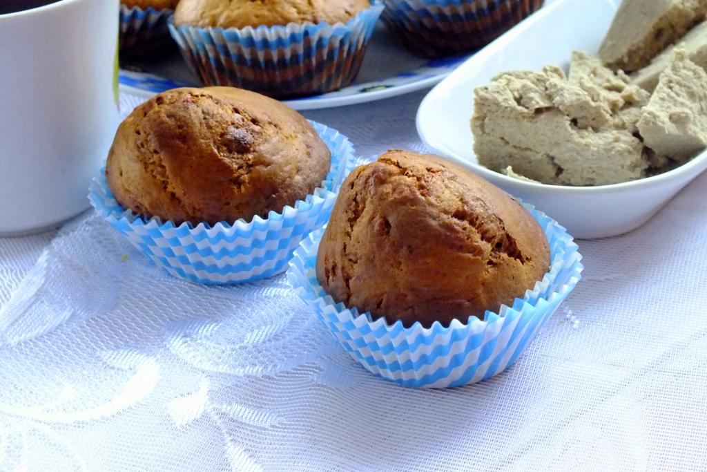 Ароматные, в меру сладкие кексы с халвой отлично подойдут к утреннему чаю или кофе, их можно взять с собой в дорогу или на работу в качестве перекуса.
