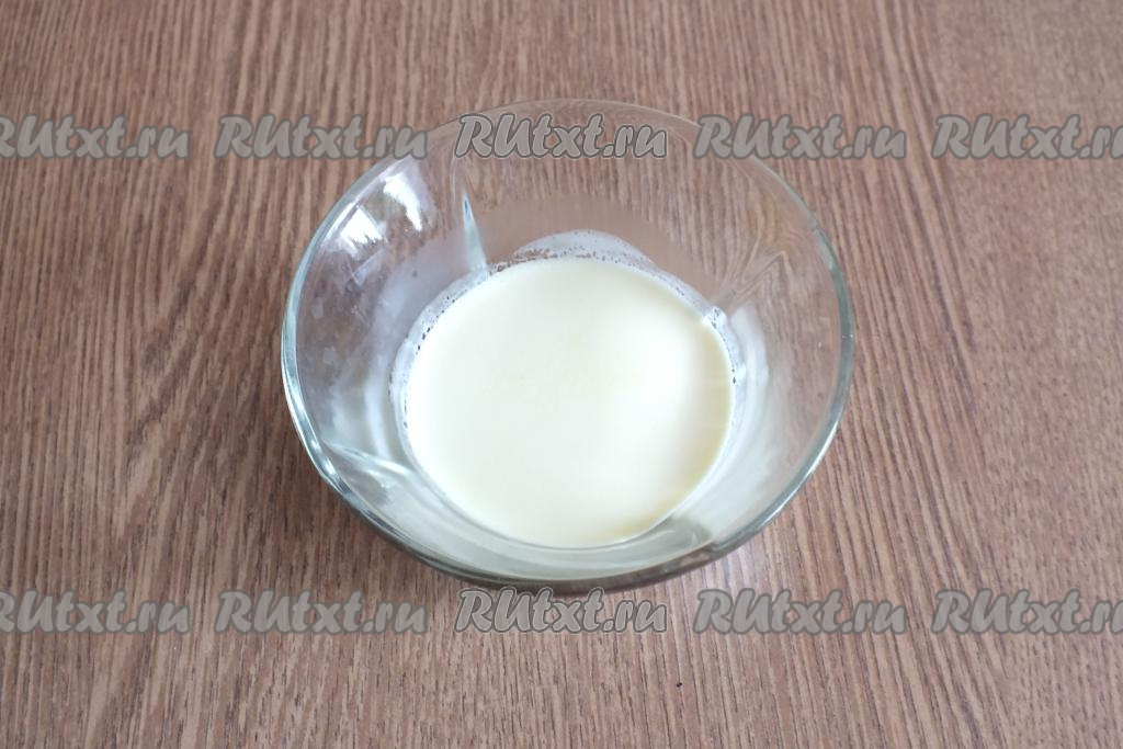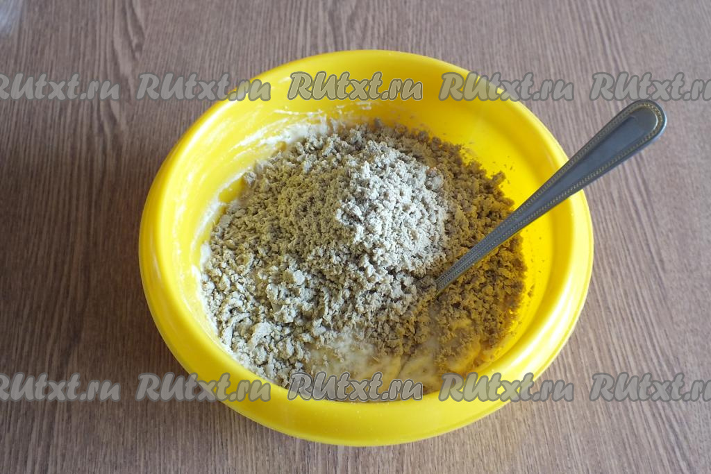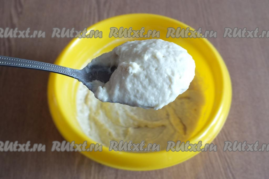 Перемешайте содержимое миски. Тесто станет слегка жидковатым, но будет по-прежнему хорошо держаться на ложке.