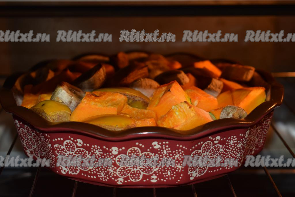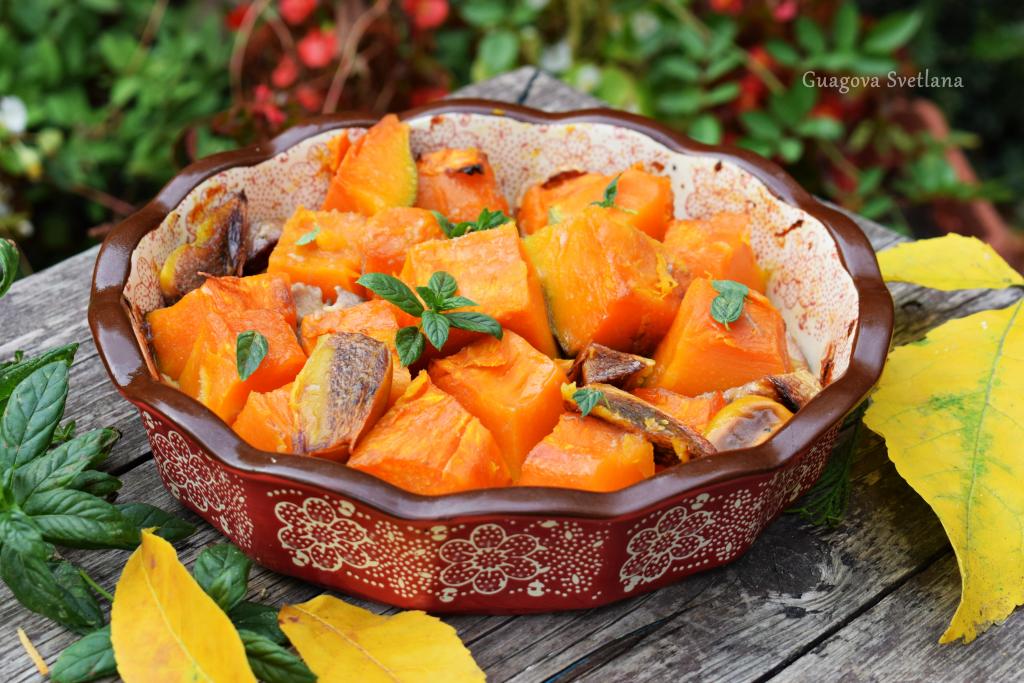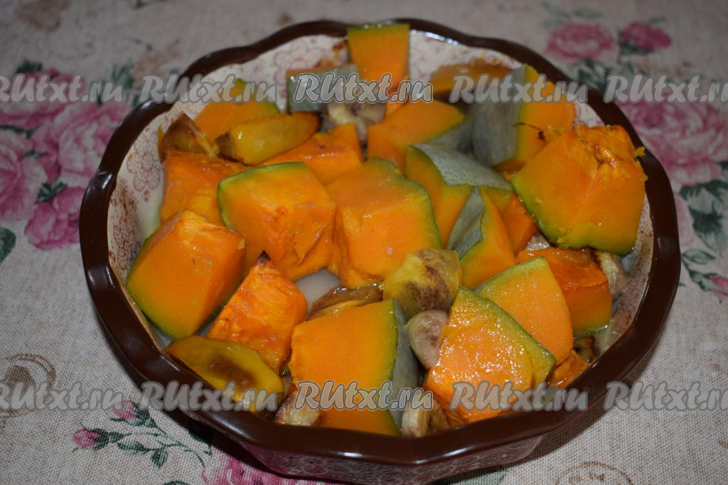 Запекаем тыкву с фруктами при температуре 200 градусов, примерно, 40 минут. Достаём десерт из духовки, он уже на этой стадии будет чудесно пахнуть.