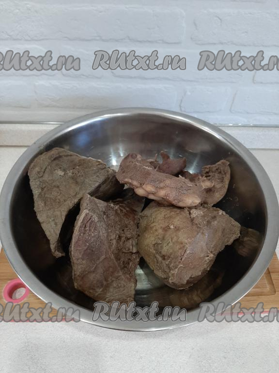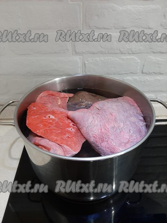 После того как печень, сердце и лёгкое сварятся, вытаскиваем их из кастрюли. Бульон выливать не торопитесь, он ещё пригодится для приготовления начинки.