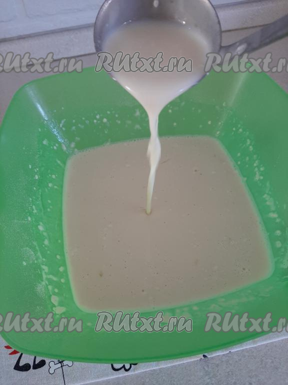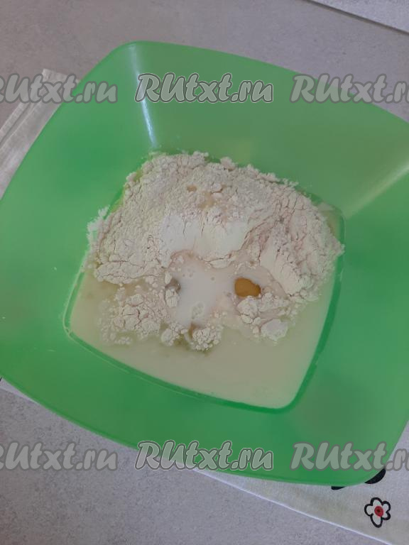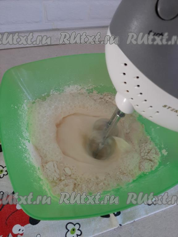 Перемешиваем содержимое миски до однородности миксером (или венчиком) и даём тесту постоять 15 минут.