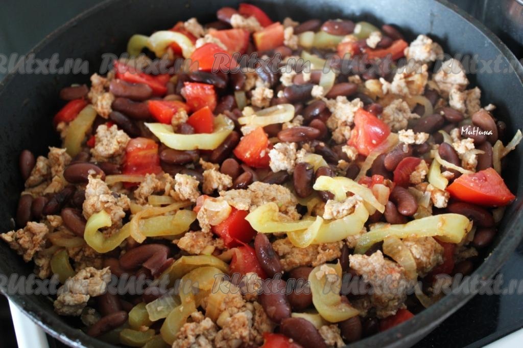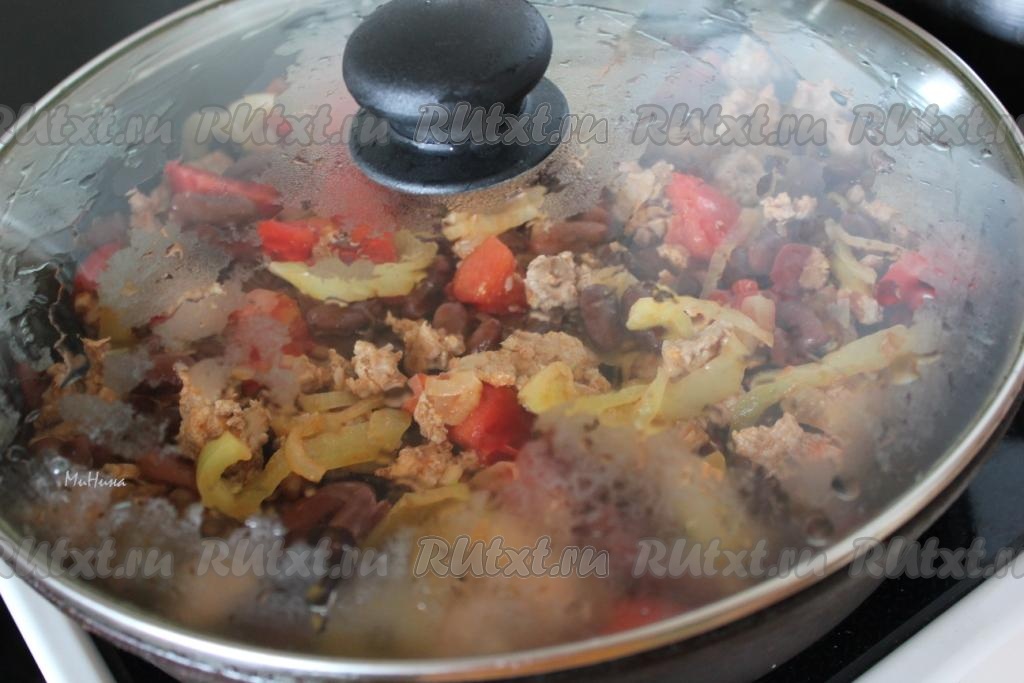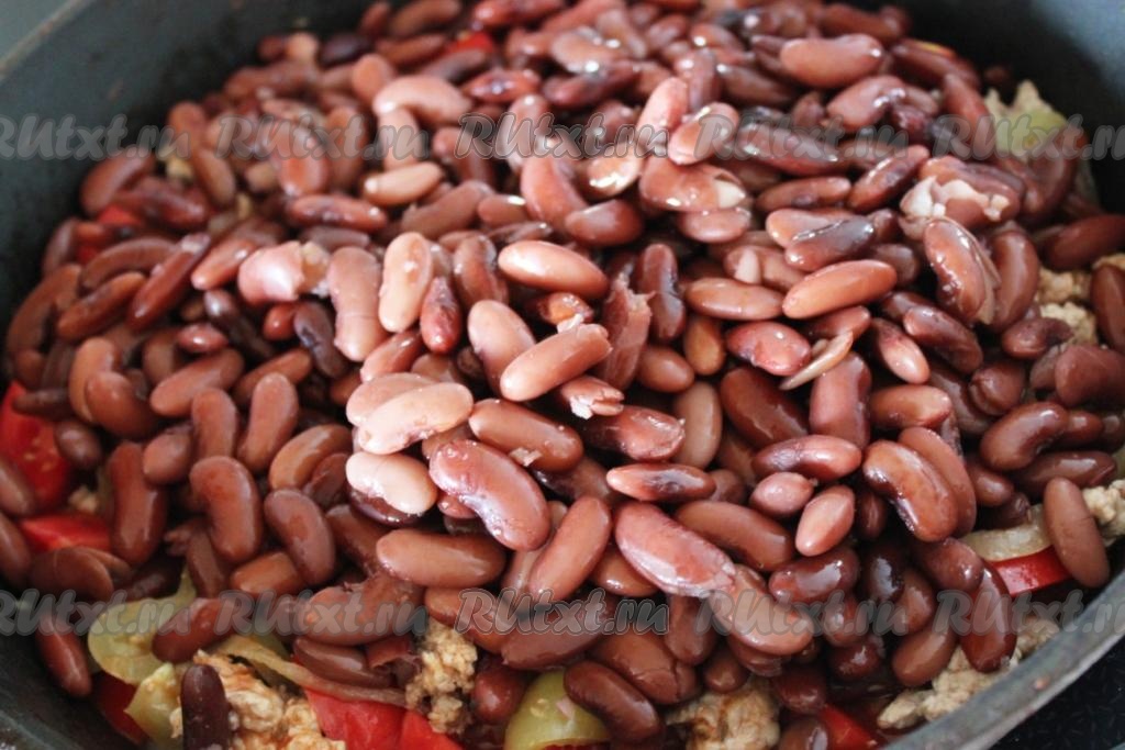 Добавьте красную фасоль к мясному фаршу с овощами.