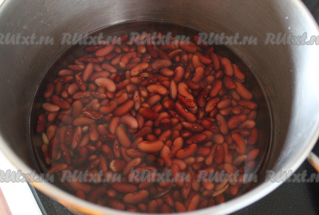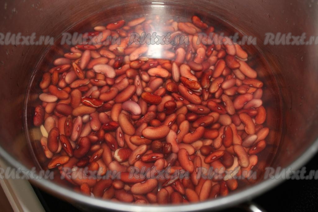 Замочите красную фасоль, например, утром, чтобы приготовить на ужин, периодически меняйте воду.