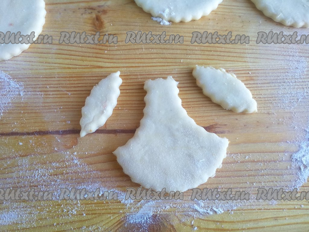 По прошествии времени достать тесто из холодильника и раскатать в пласт толщиной 3-4 мм. Выемкой для печенья диаметром 9 см (или подходящей по диаметру чашкой) вырезать круглые заготовки.