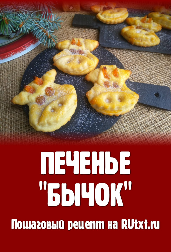 Такая аппетитная, вкусная выпечка особенно понравится деткам, хотя и взрослые не останутся равнодушными. Порадуйте своих близких, приготовьте печенье "Бычок" на новогодний стол!