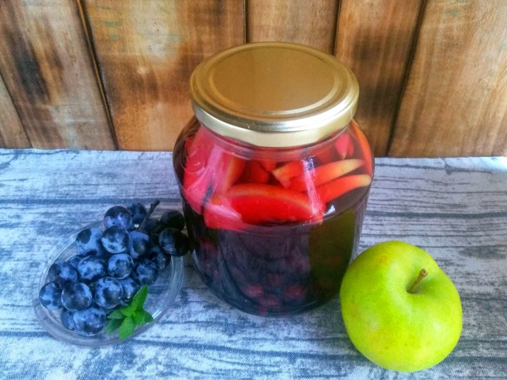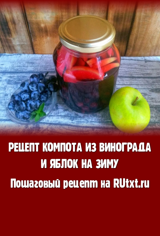 Самые простые заготовки на зиму - это компоты из фруктов и ягод. Они не требуют стерилизации, готовятся быстро и сохраняют максимальное количество витаминов. Предлагаю вам рецепт приготовления компота из винограда и яблок на зиму. Для этой заготовки предпочтительнее тёмные сорта винограда, именно они придадут напитку насыщенный цвет. Компот получается кисло-сладким, хотя, конечно, количество сахара можно откорректировать по вкусу. Рецепт дан из расчёта на одну литровую банку.
