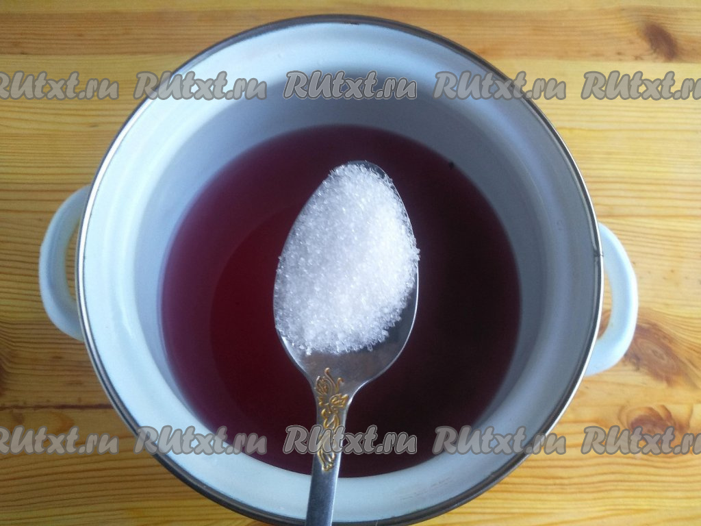 В кастрюлю с настоем добавить сахар, перемешать, поставить на огонь, дать закипеть, а затем проварить сироп 2-3 минуты, чтобы весь сахар растворился.