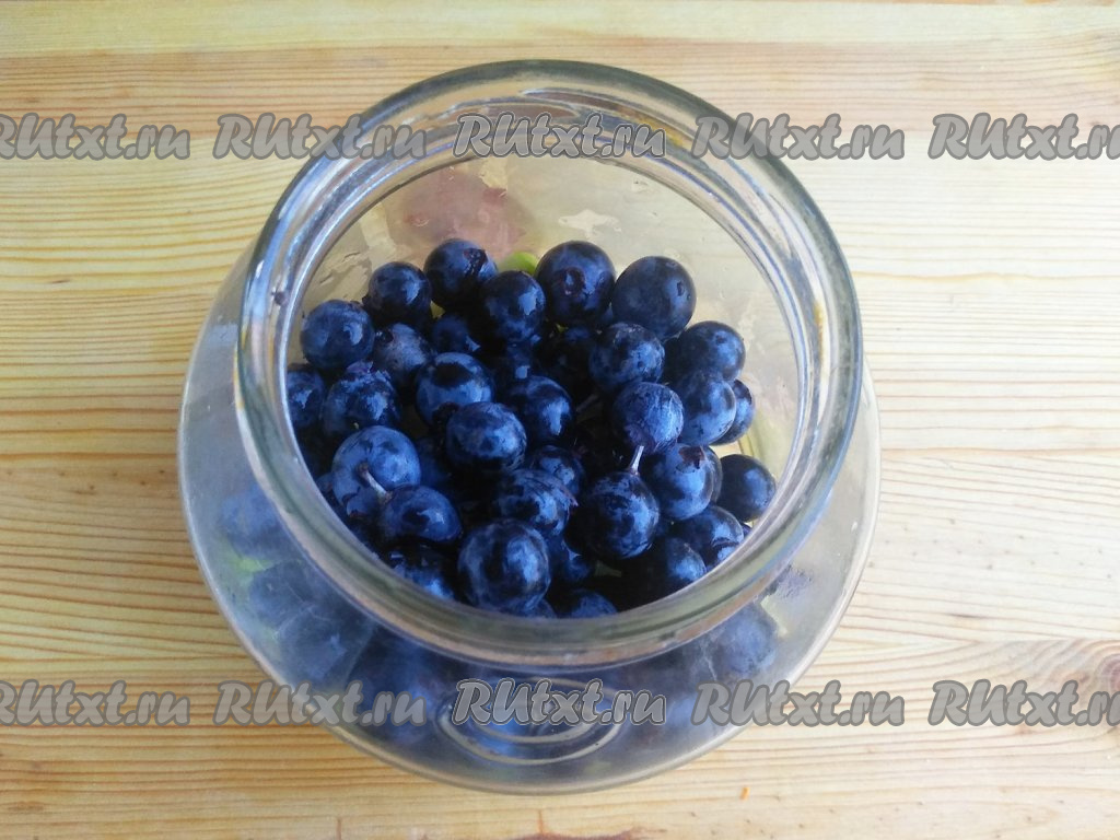 Виноград промыть, снять с веточек. Выложить ягоды в банку.
