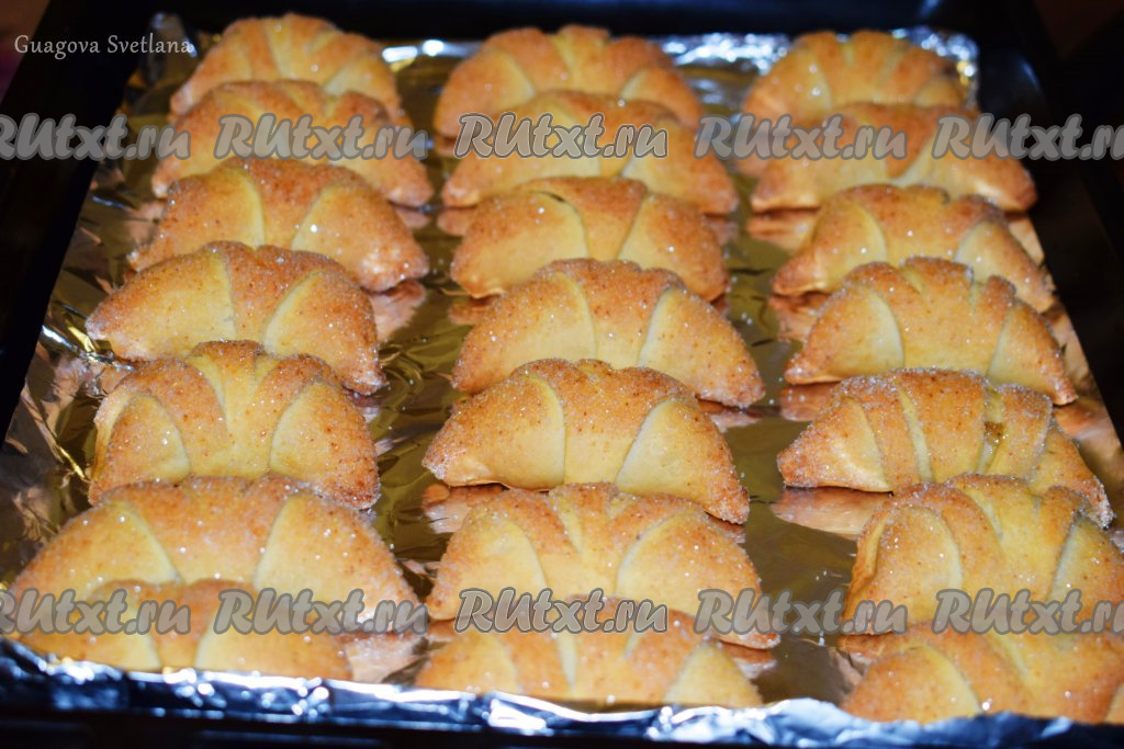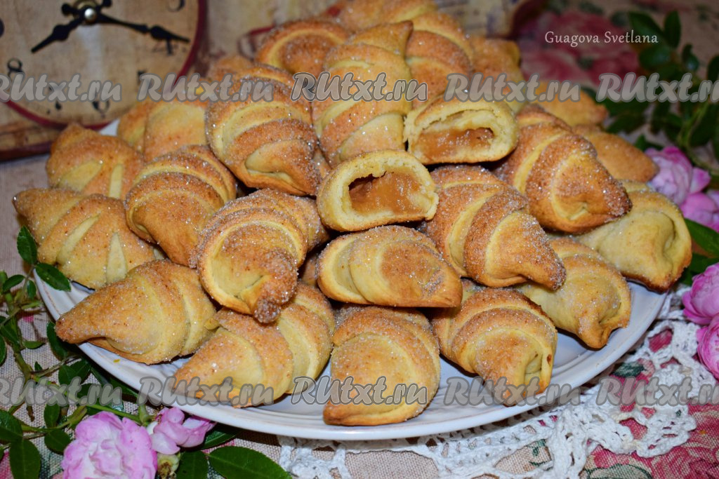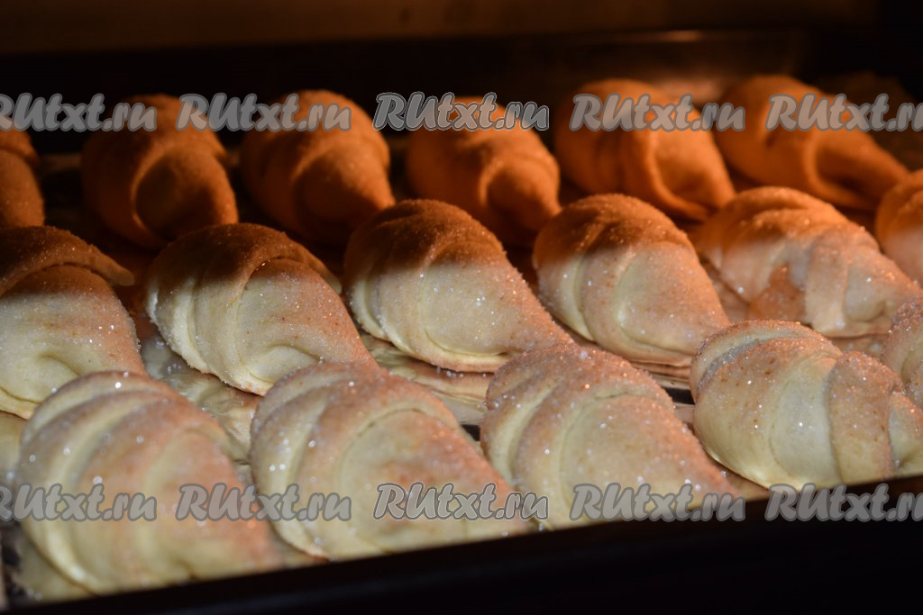 Готовые рогалики получаются нежно-золотистыми, с чудесным ароматом свежей выпечки.
