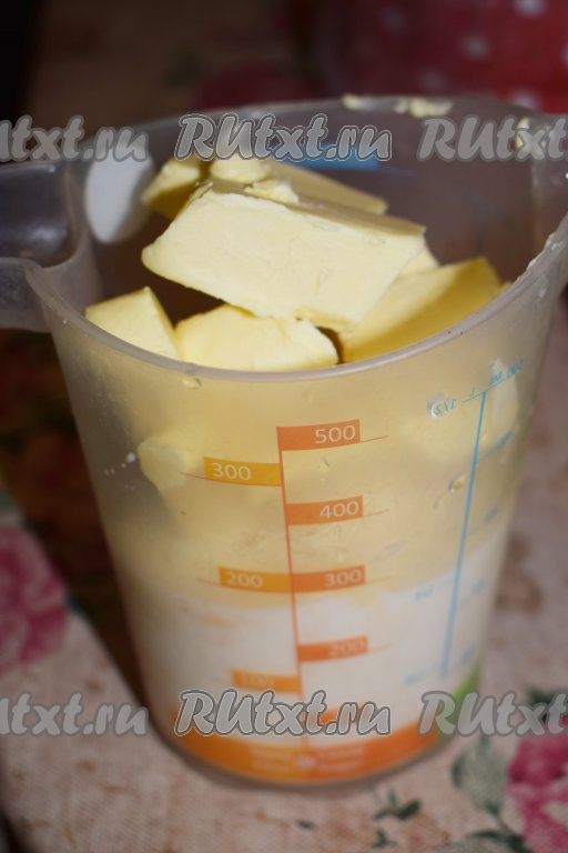 В ёмкость, пригодную для СВЧ, наливаем молоко, кладём маргарин, нарезанный на кубики, и отправляем в микроволновку на 1 минуту. За это время молоко станет тёплым, а маргарин расплавится до мягкого состояния, молочно-масляная смесь не должна получиться горячей, её температура не должна превышать 40 градусов.