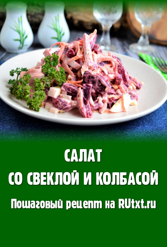 Салат со свеклой и колбасой - это простой и очень вкусный салатик для обеда или ужина. Колбасу можно использовать варёную, варёно-копчёную, копчёную или сыровяленую - от этого будет немного меняться вкус блюда. Я заправила салат сметаной, можете взять домашний йогурт или майонез.
