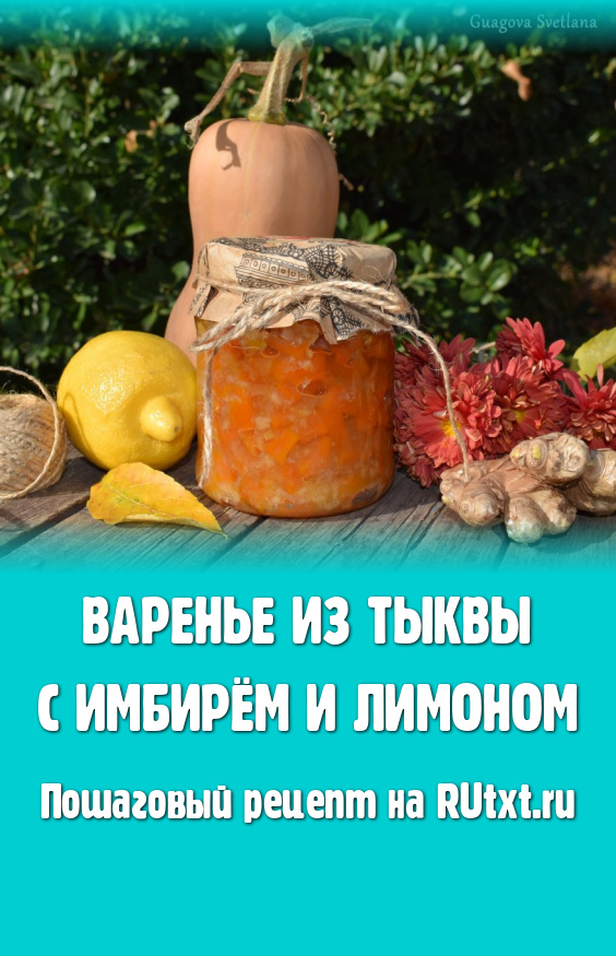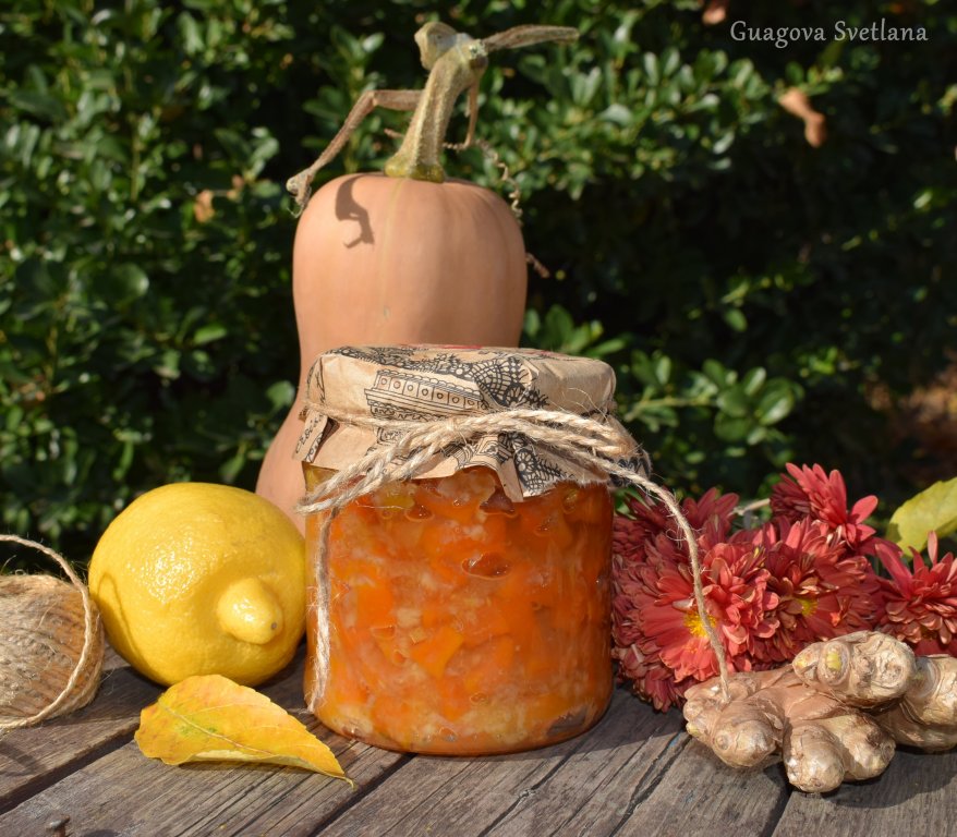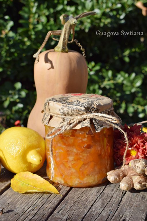 Предлагаю вашему вниманию рецепт вкусного, ароматного и полезного варенья из тыквы, которое готовится с добавлением имбиря и лимона. Варенье получается с кислинкой лимона и ароматом имбиря, а тыква становится похожа на цукаты или мармелад и приобретает совершенно иной вкус. Такое варенье можно подать к чашечке чая. Оно станет и отличной начинкой для пирогов, рогаликов или булочек. Попробуйте, варенье получается очень вкусным! Выход по данному рецепту 1 баночка объёмом 0,5 литра.