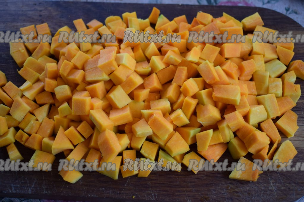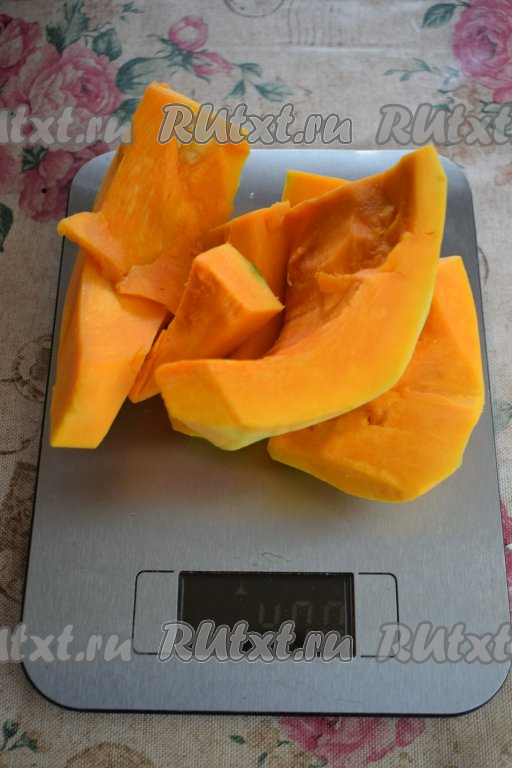 Тыкву очищаем от кожицы и семян, вес подготовленной тыквы должен быть 400 грамм.