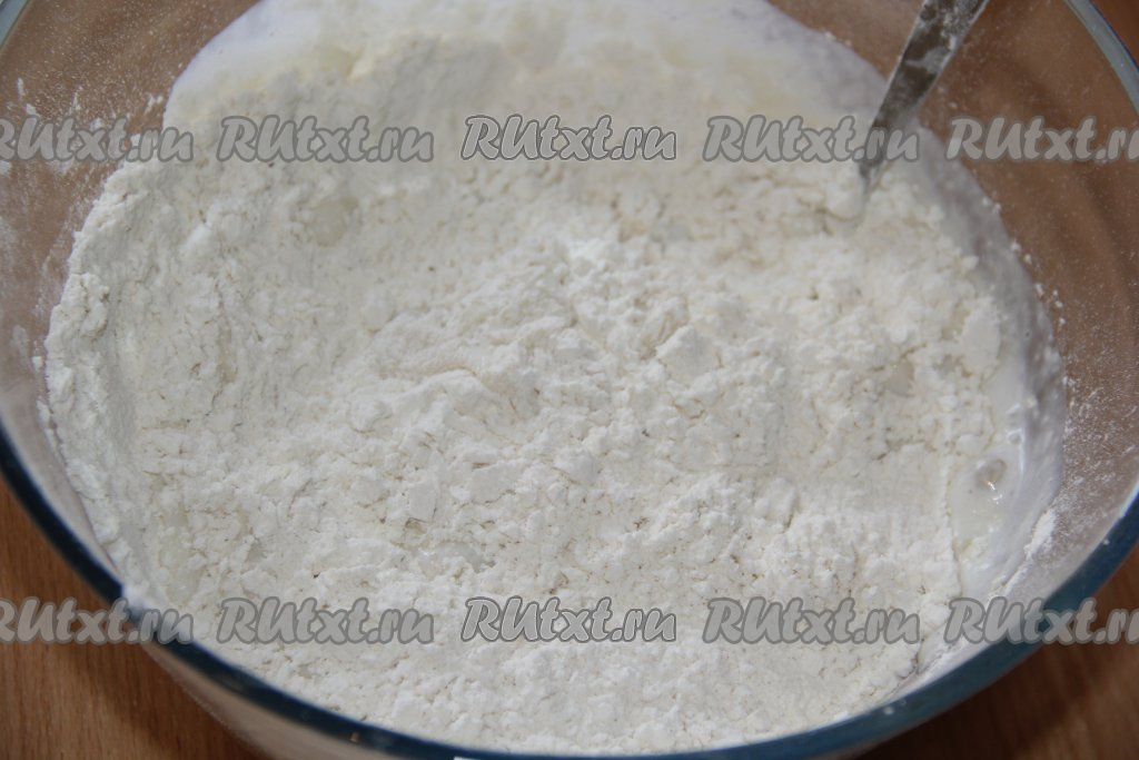 В кефир добавить соду, перемешать (я перемешивала столовой ложкой, можно перемешивать венчиком), оставить на 2-5 минут.