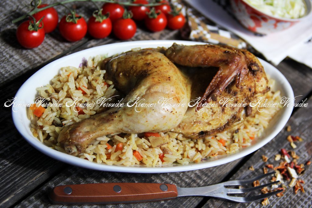 Предлагаю приготовить в духовке курицу с рисом в рукаве для запекания. Рецепт очень удачный, ведь одновременно готовятся и куриное мясо, и гарнир к нему. Рис получается рассыпчатым и ароматным, а курочка становится очень нежной и пропаренной. Я использовала половину тушки курицы, но можно взять порционные части или использовать только, например, ножки или бёдрышки. К рису я ещё добавила сушёные грибы, но это необязательно. Это вкусное, сытное блюдо готовится ну очень просто, а получается отличным, попробуйте!