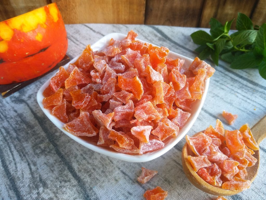 Аппетитные, вкусные, яркие цукаты из тыквы, приготовленные с добавлением лимонной кислоты, можно подать к чаю или использовать в качестве дополнения, например, к различной выпечке. Хранить тыквенные цукаты нужно в сухом прохладном месте в стеклянной банке с плотной закрытой крышкой.