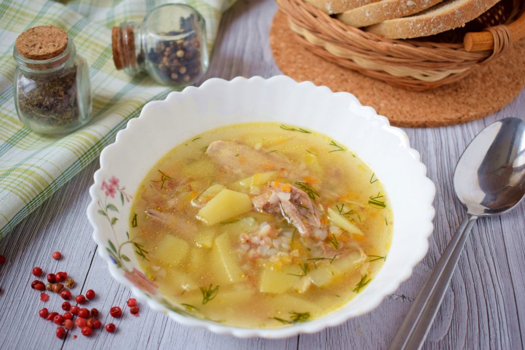 Вкусный, ароматный, аппетитный и сытный куриный суп с гречкой и картошкой готов, разлейте его по тарелкам и подавайте к столу!