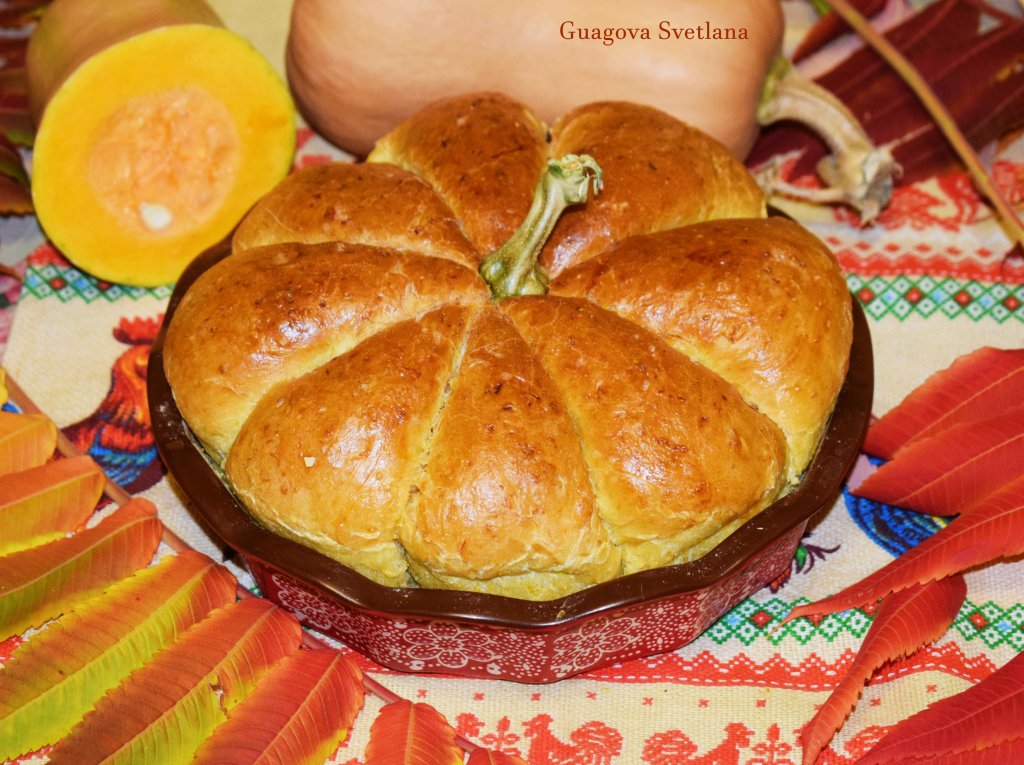 В процессе выпечки хлеб хорошо поднимется и станет ещё больше походить на тыкву.