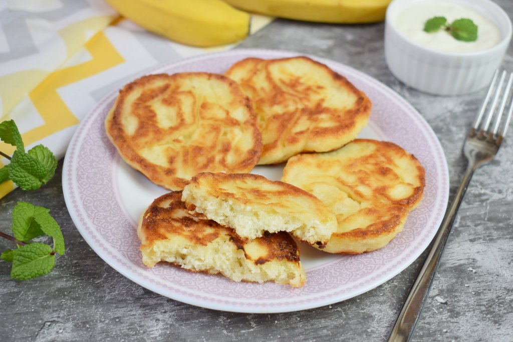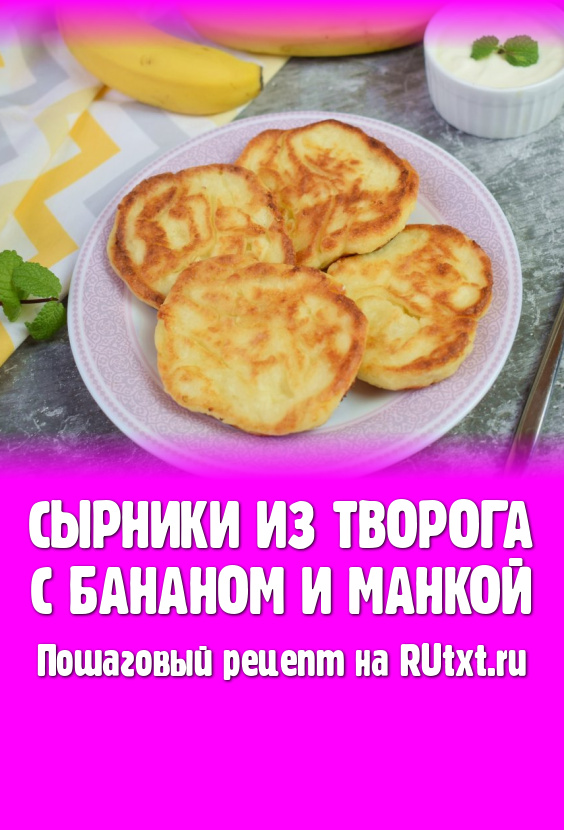 Аппетитные, очень вкусные сырники, приготовленные из творога с добавлением банана и манки, к столу подаём горячими, дополнив сметаной, сгущённым молоком или джемом.