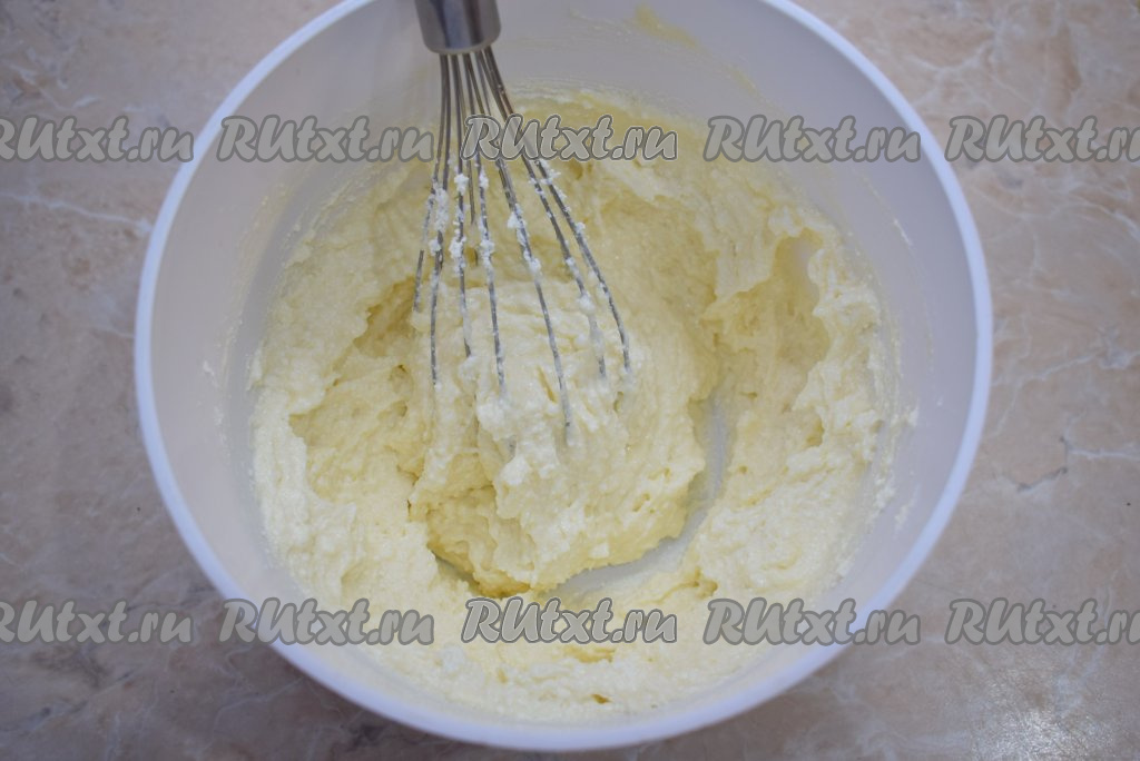 Взбивать ничего не надо, иначе творожное тесто станет жидким.