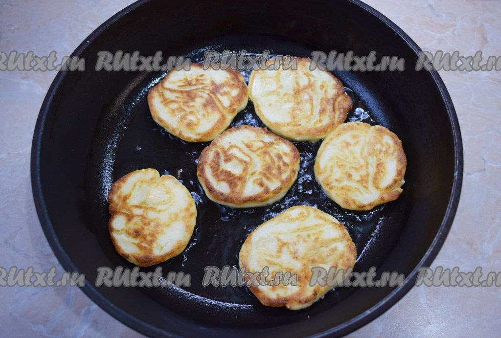 Огонь должен быть небольшой, чтобы сырники успели прожариться внутри и не начали подгорать снаружи.