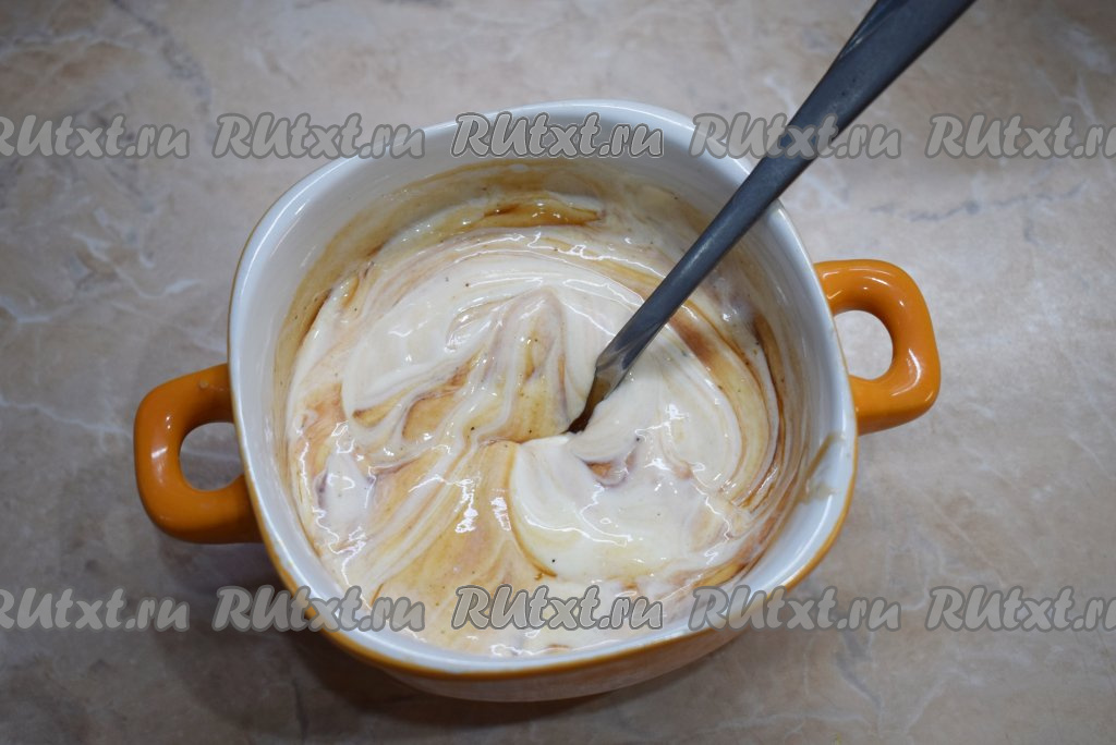 В отдельной чаше соедините майонез с кетчупом, тщательно перемешайте получившийся соус.
