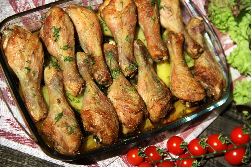 Для того чтобы приготовить куриные голени с картошкой в духовке потребуется: