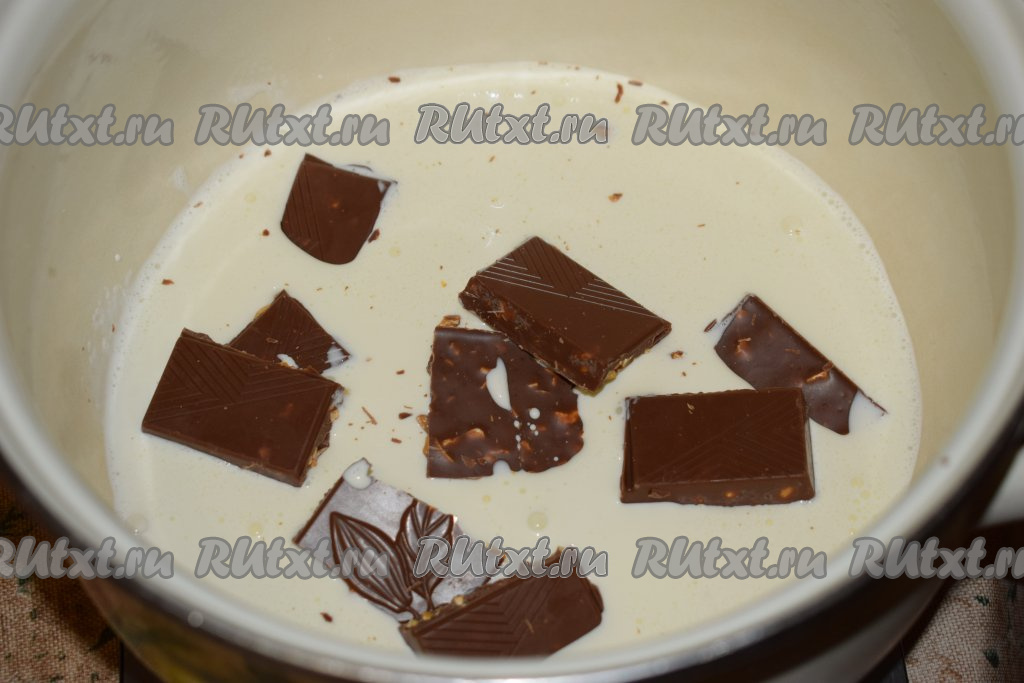 Убираем кастрюлю с огня и оставляем остывать до комнатной температуры, затем ставим шоколадные сливки в холодильник и даём хорошо остыть.