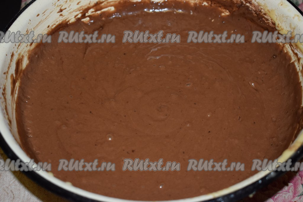 Дадим тесту постоять пару минут для того, чтобы какао разошлось, и наше шоколадное бисквитное тесто готово.