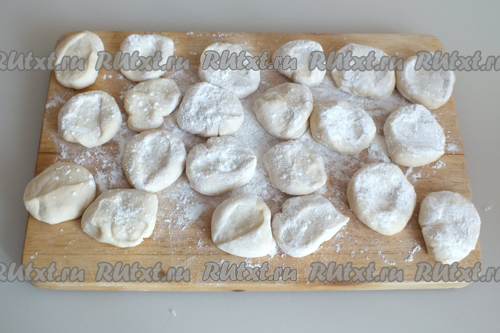 Таким образом все кусочки теста обваляйте в муке и прижмите пальцами.