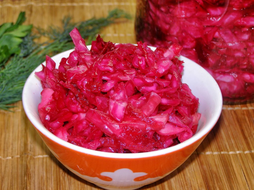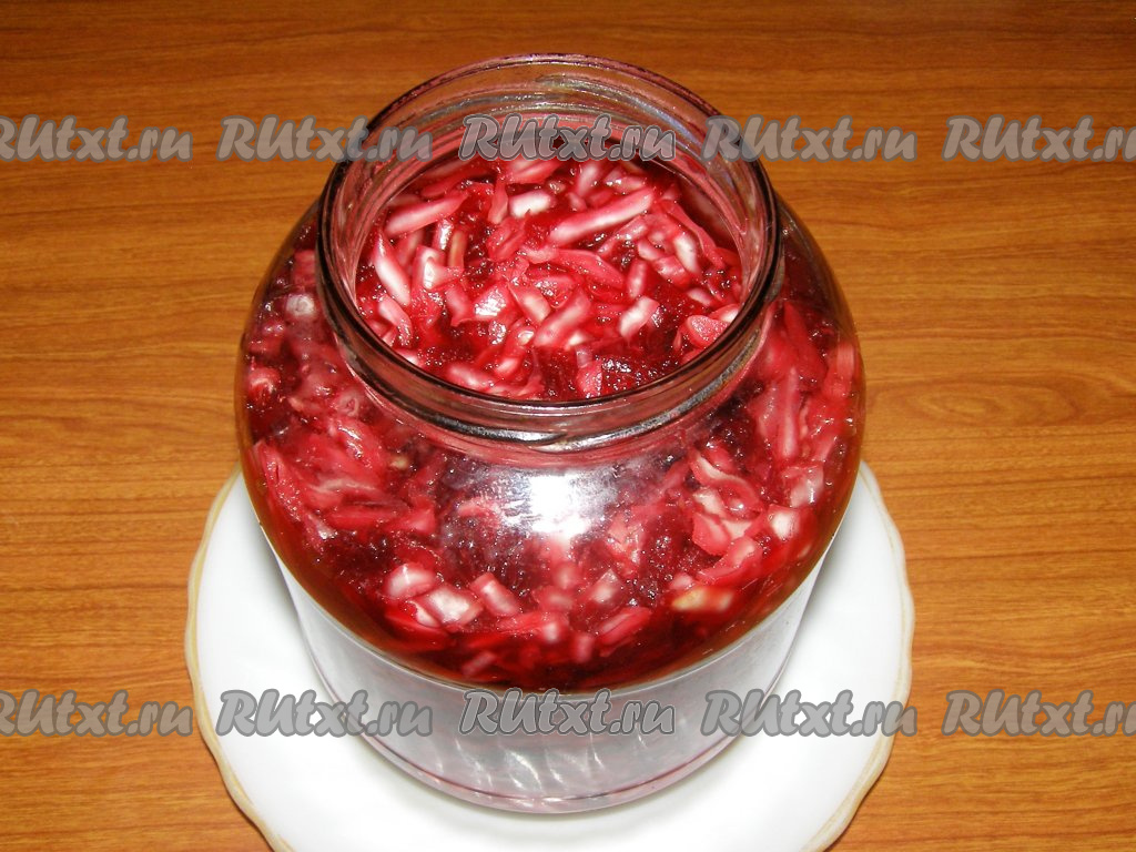 Банку с готовой капустой, квашеной со свеклой, накрываем крышкой и храним в холодильнике. Сочную, хрустящую капусту можно подать к столу в качестве отдельной закуски или использовать для приготовления салатов, супов и других блюд.
