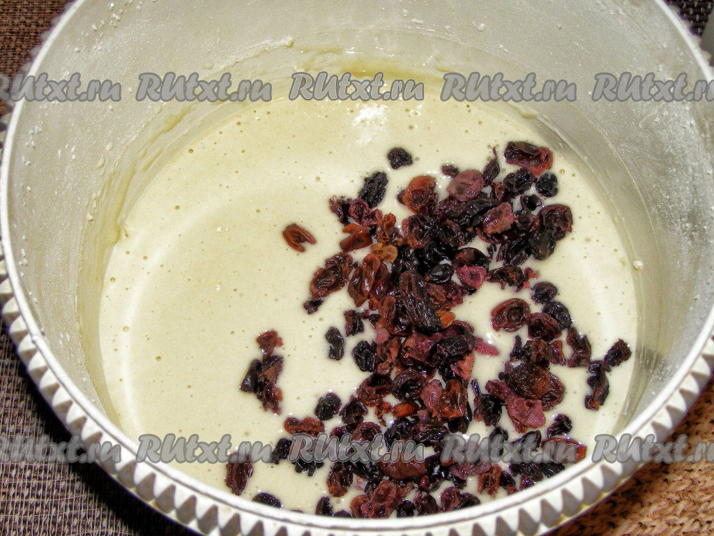 Изюм просушиваем на полотенце и добавляем его в тесто, перемешиваем ложкой.