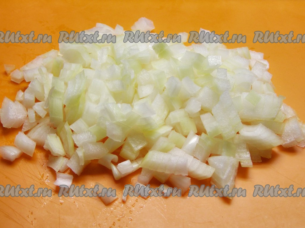 Для приготовления начинки для беляшей мелко нарезаем очищенный от шелухи репчатый лук.