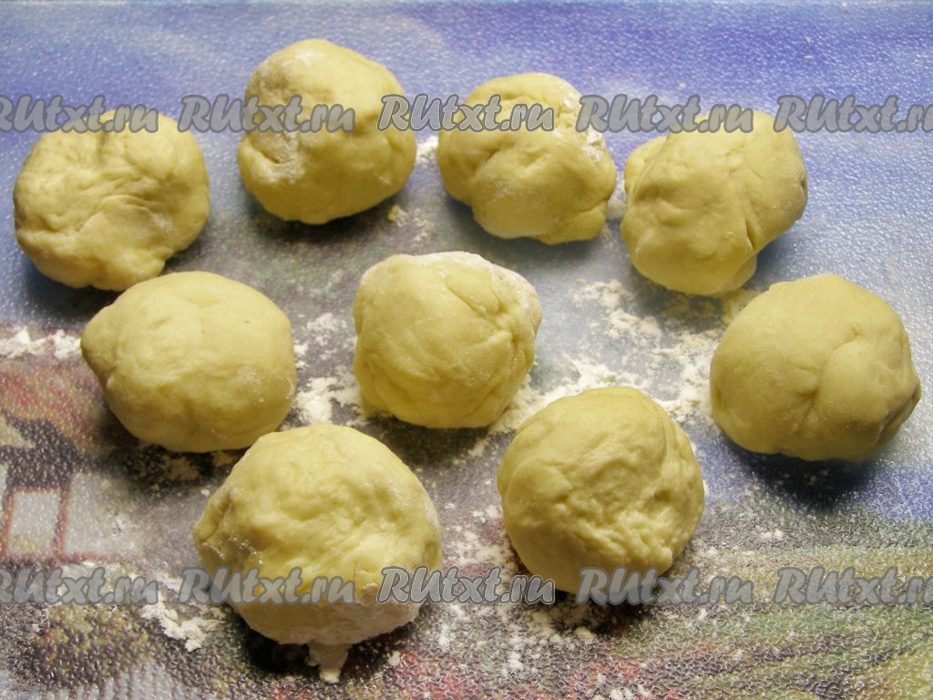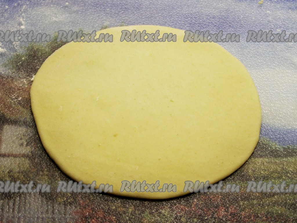 Каждый кусочек раскатываем в тонкий круг диаметром 10-12 см.