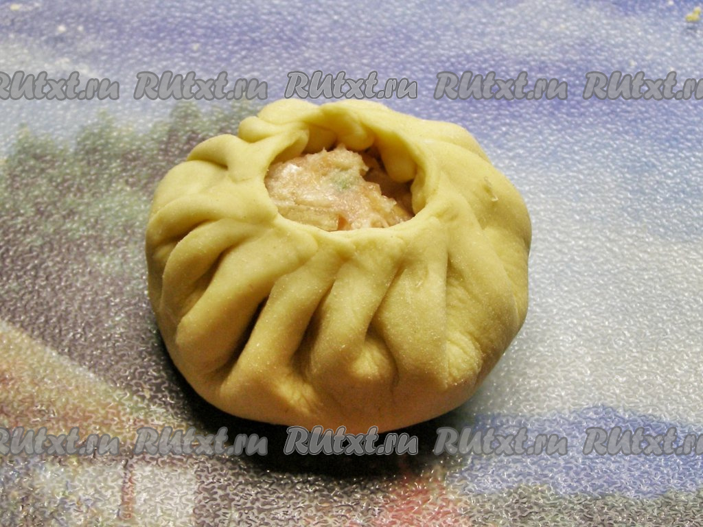 Поднимаем края теста и крепко защипываем их, оставляя по середине небольшое отверстие диаметром около 1 см.