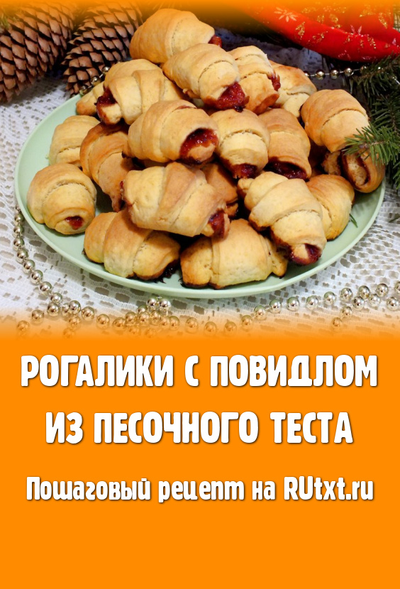 Мягкие, вкусные, аппетитные рогалики с повидлом, приготовленные из песочного теста, украсят семейное чаепитие, можно их подать и гостям.