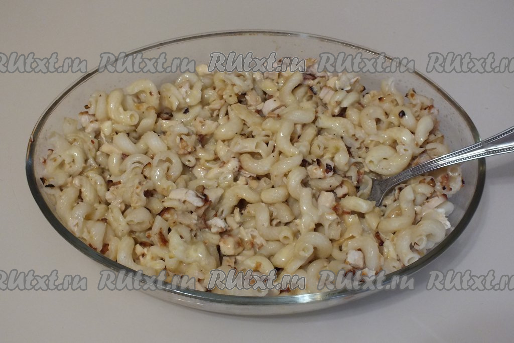 Для приготовления запеканки из макарон с сыром и курицей в духовке потребуется: