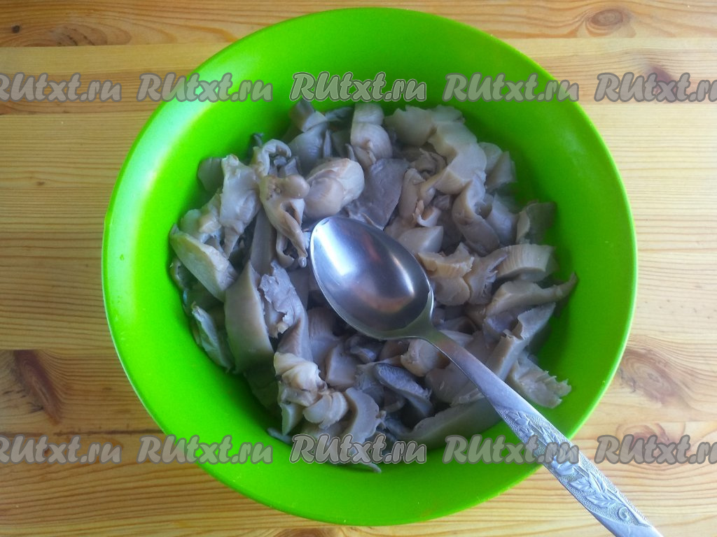 Вешенки промыть в проточной воде. Грибы нарезать продольными полосками шириной около 1 см.