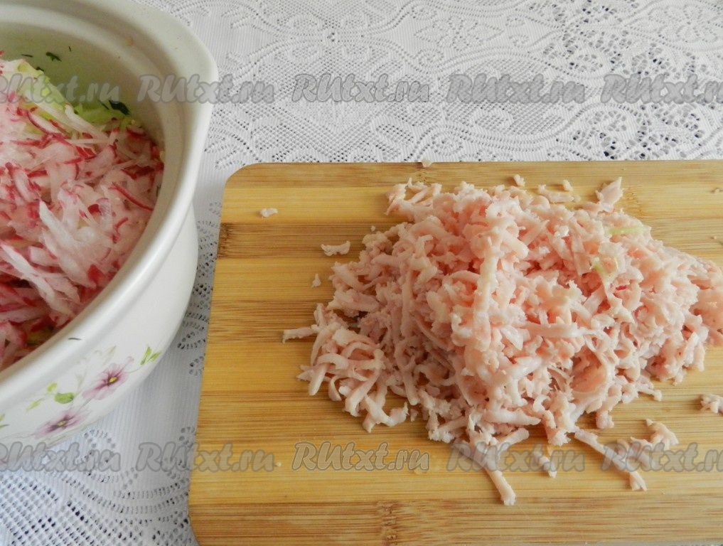 Ветчину также натереть на терке.