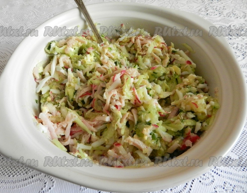 Перемешать все ингредиенты, добавить, если нужно, соль и черный молотый перец. Основа для наивкуснейшей окрошки на кефире готова.