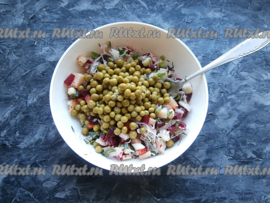 Сюда же добавить и консервированный горошек без жидкости.
