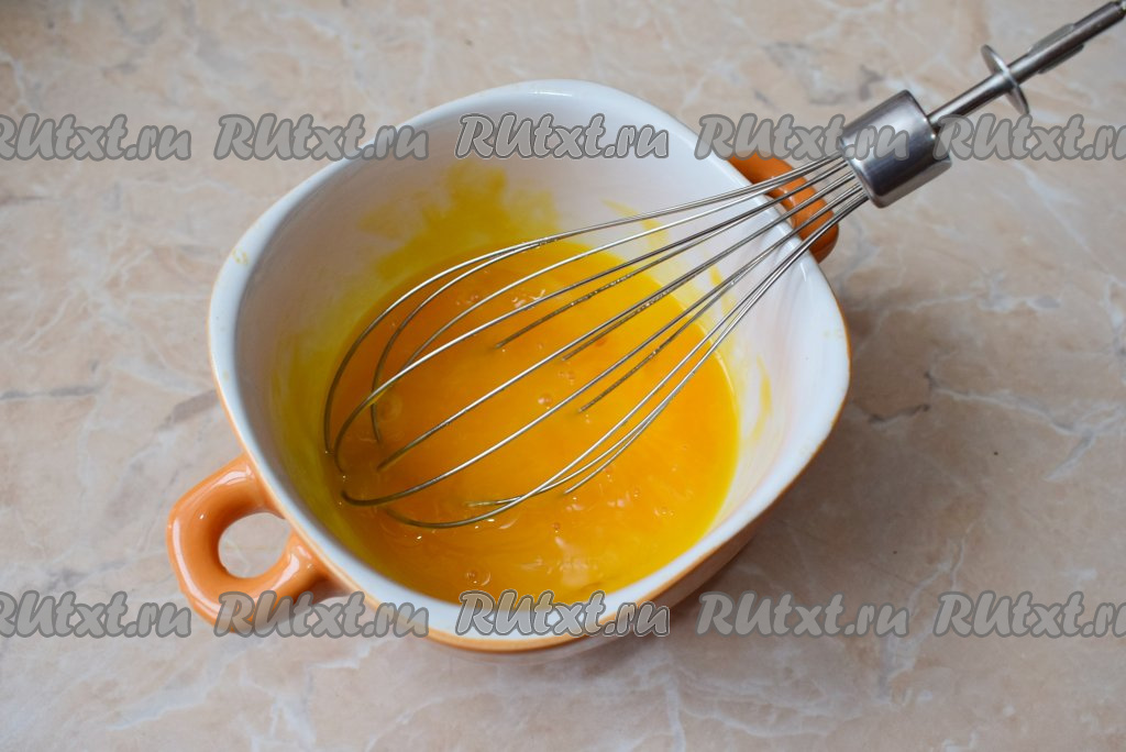 В отдельной чаше взболтайте венчиком яичные желтки.