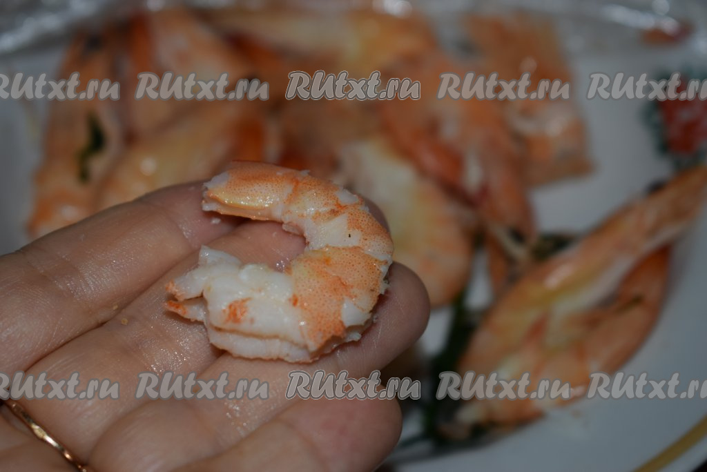 Далее очищаем креветки от головы и панциря. У каждой креветки удаляем "ниточку" кишечника. Таким образом подготовим все креветки.