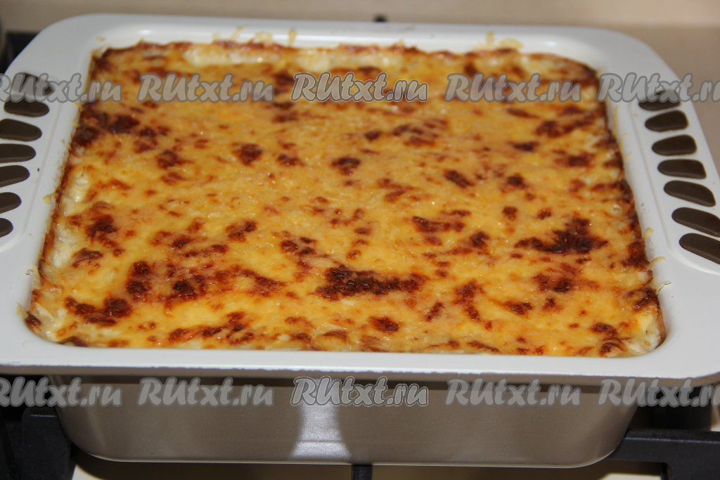 Запекать ленивую лазанью в разогретой духовке при температуре 200 градусов, примерно, 35 минут. Верх лазаньи должен покрыться красивой корочкой.