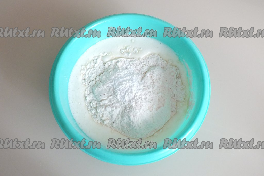 Добавьте муку, разрыхлитель.