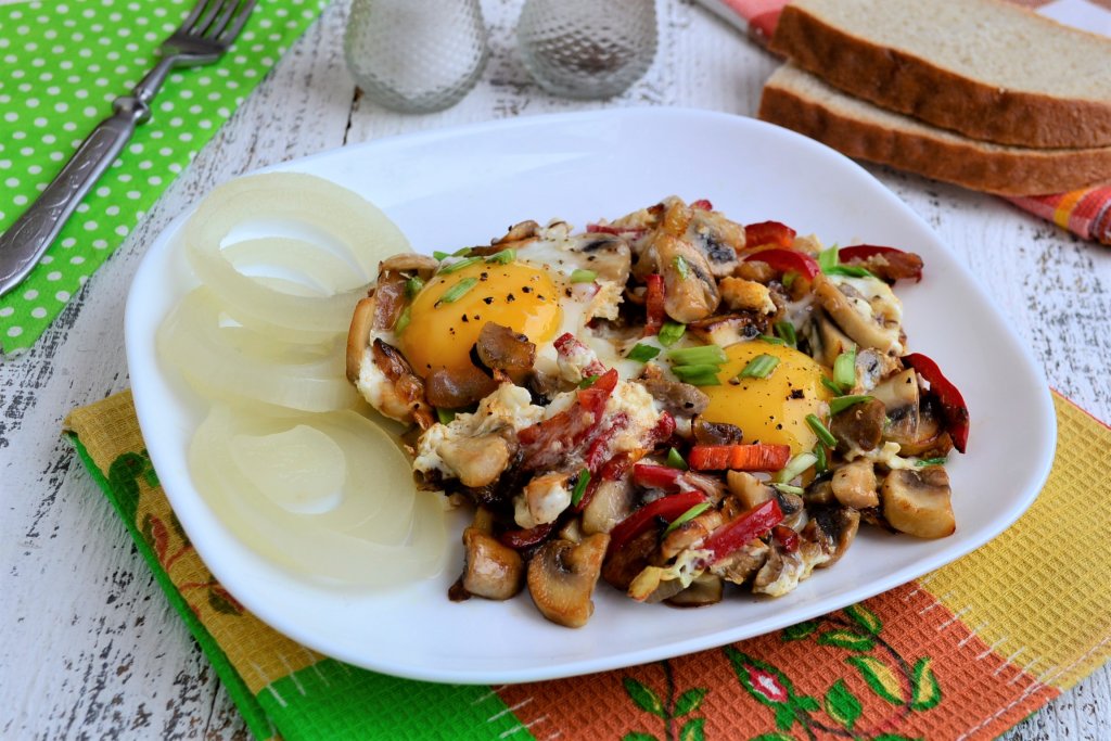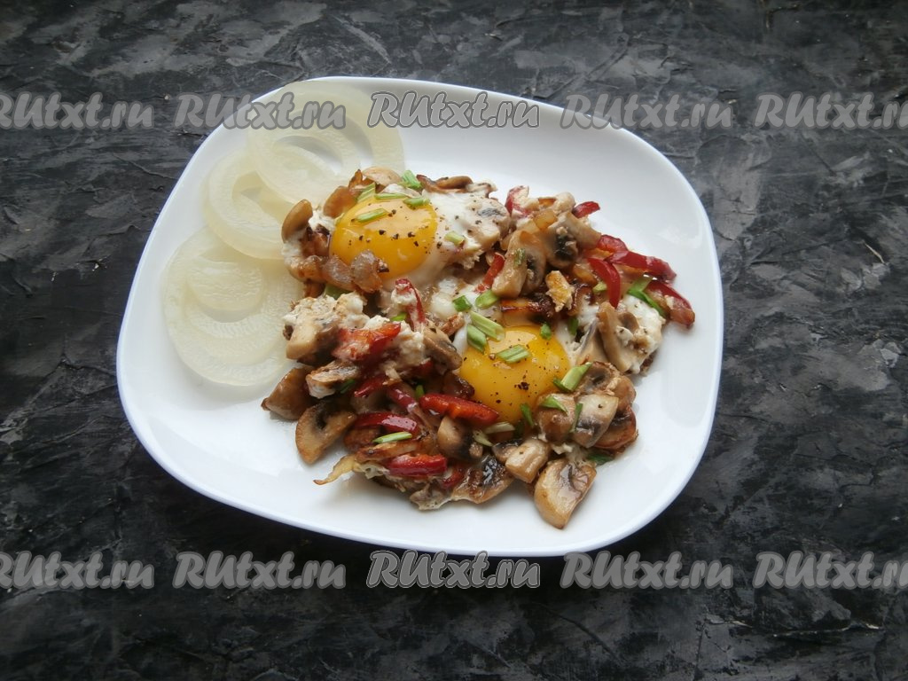 Яичница с шампиньонами и луком