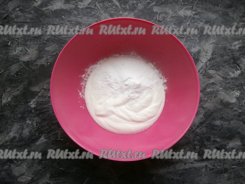 Полосы остудить. Приготовить крем: в сметану добавить загуститель.