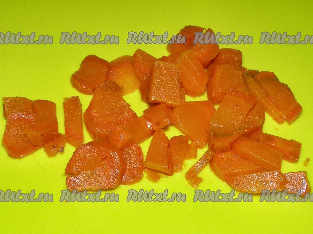 Слегка остывшую варёную морковь нарезаем кружочками (или полукружками).