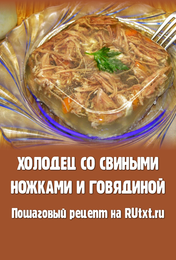 Холодец - одно из традиционных блюд праздничного застолья. Есть много разных вариантов его приготовления, я предлагаю вам рецепт холодца со свиными ножками и говядиной. Благодаря тому, что в свиных копытцах содержится много желирующего вещества (коллагена), холодец готовится без добавления желатина. Получается такой холодец прозрачным, нежным, ароматным и аппетитным, с насыщенным мясным вкусом. Приготовьте такой холодец и он, наверняка, займёт почётное место на вашем праздничном столе!